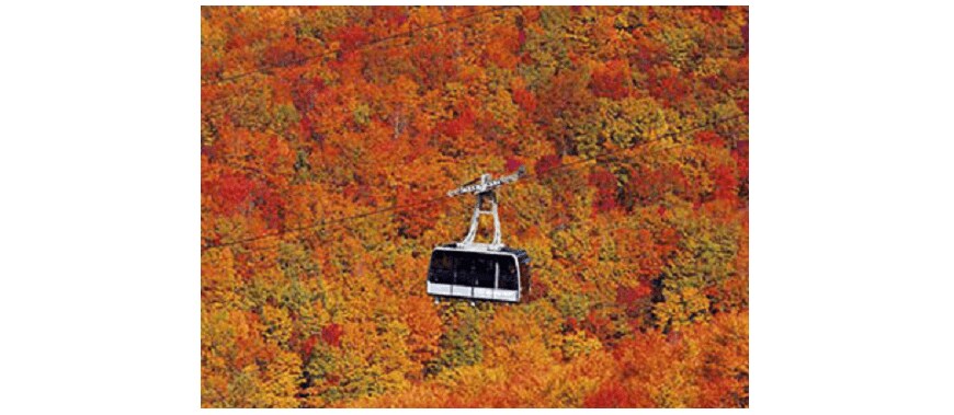 ロープウェイのゴンドラの中から山々の紅葉を楽しむことができる、まさに絶景スポットです。