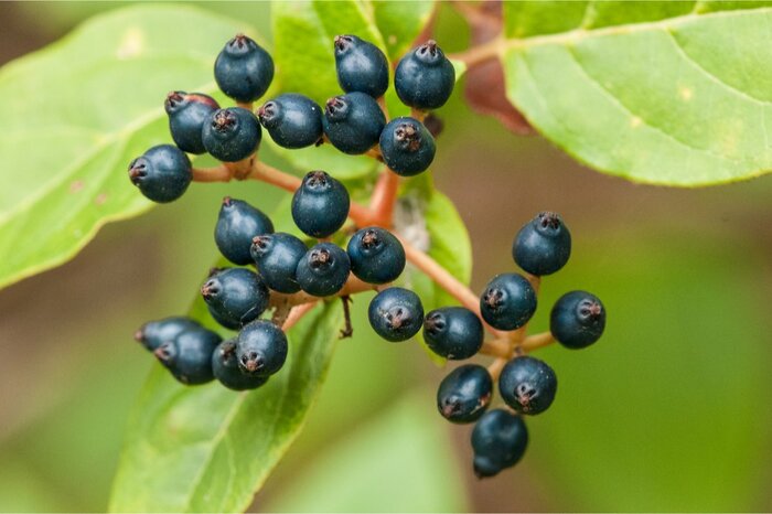 品種によって異なりますが、秋になると鈴なりに赤や青などの実がなり、とくに艶やかな濃いブルーはシックな印象。