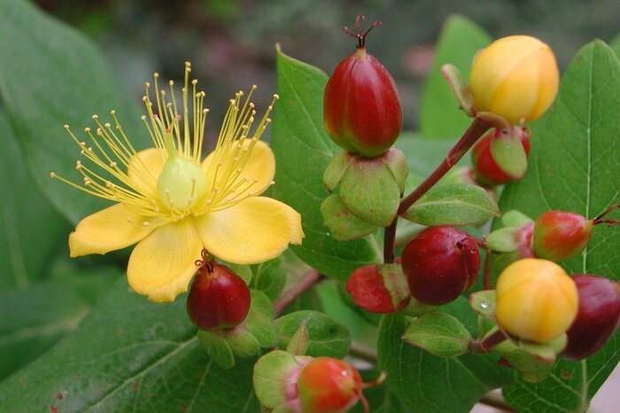 キンシバイやビョウヤナギなど多くの品種があるヒペリカム。5~7月にかけて咲く黄色い花が鮮やかです。耐寒性・耐暑性ともに強く、公園の植栽などによく利用されています。
