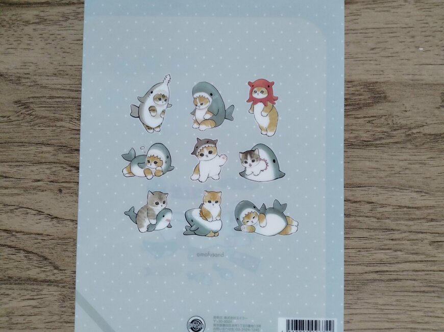「サメにゃん」デザインのものは下の写真のように、さまざまなバリエーションのサメにゃんが描かれています。