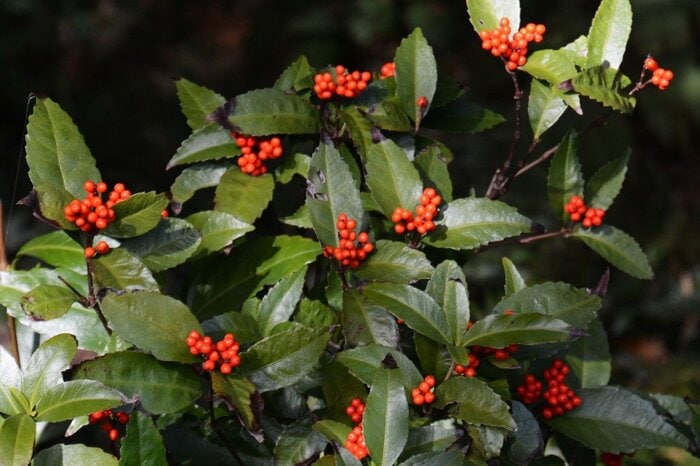 冬に可愛らしい赤い実をつけるセンリョウは常緑の低木。日当たりに恵まれない場所でも育てやすく、シェードガーデンに貴重な彩りをもたらします。