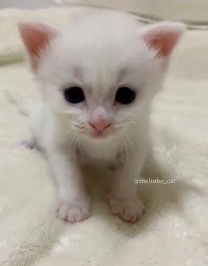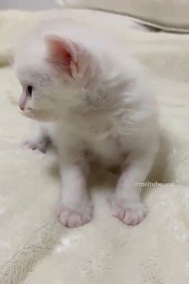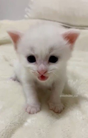そしてマオくんが口を開けると……?赤ちゃんらしさが伝わる可愛い声で「ミャウウウ!」と話しかけたのでした。白くてちっちゃな体で、一生懸命に語りかけるマオくん……!こんなにも愛らしい姿を目にしたら、1日の疲れも吹き飛んでしまいそうです。