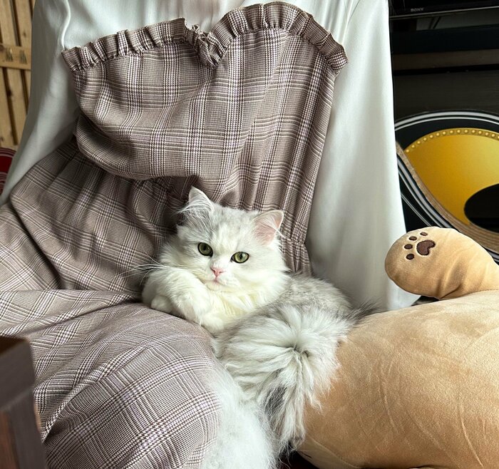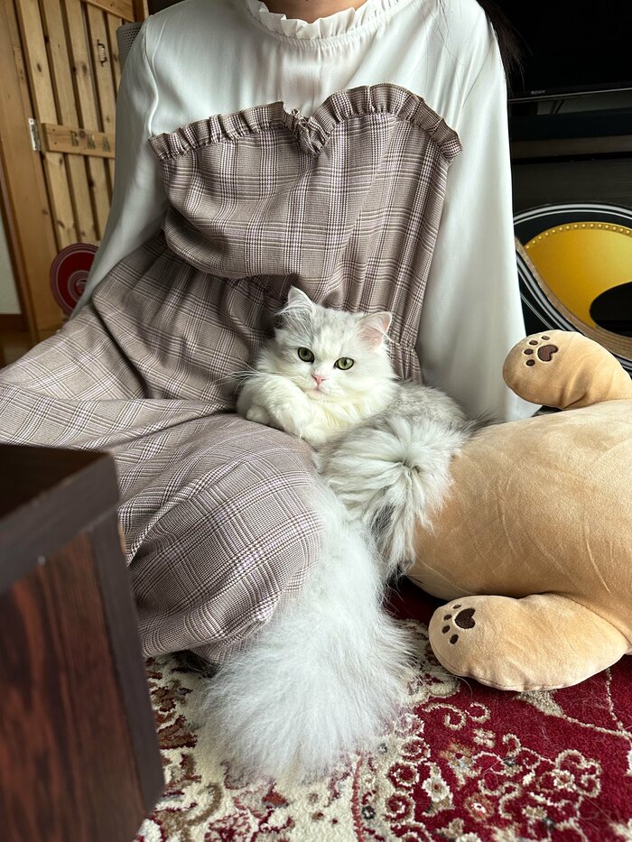 写っているのは、投稿主さんの奥様とみられる女性と1匹の猫ちゃんです。