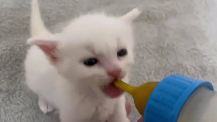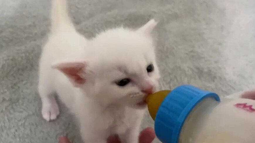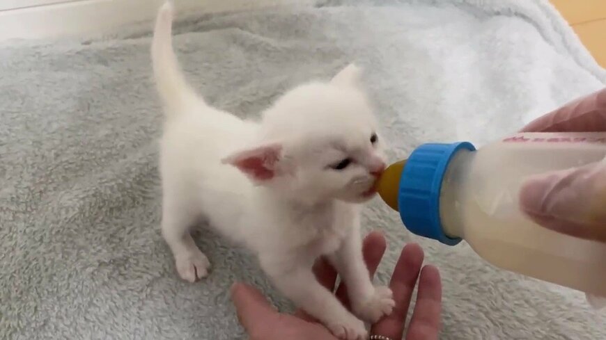「手の上でミルクを飲むベビチャン…」という書き込みとともに投稿されたのは、真っ白な子猫が一生懸命にミルクを飲んでいる様子をとらえた1本の動画でした。