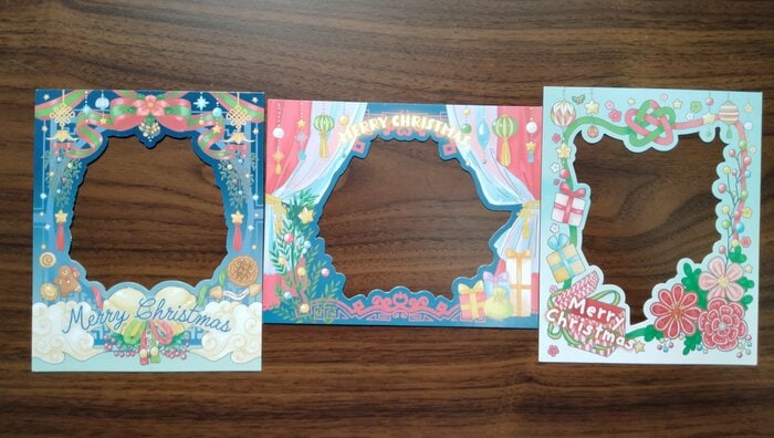 まずは、こちらの北欧風のデザインのものです。クリスマスリース(中央)やタペストリー風デザイン(左)がおしゃれです。
