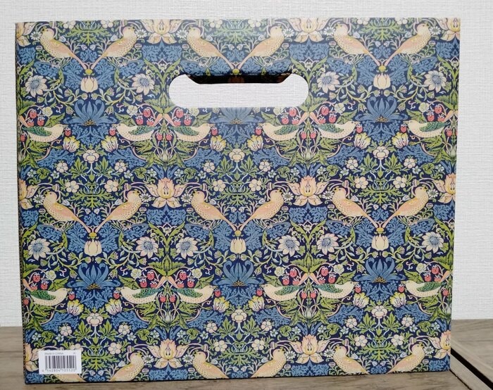裏面には持ち手も付いています。したがって、持ち運びもしやすいです。カラーボックスに入る高さなので、収納もしやすいです。