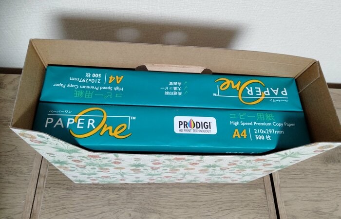 結果、A4のコピー用紙500枚の束が2つ、合計で1000枚も入りました。重要な書類などをたくさん収納することができ、重宝しそうです。