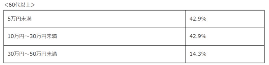 ただし、60歳代では「5万円未満」「10万円~30万円未満」がともに42.9%となっています。