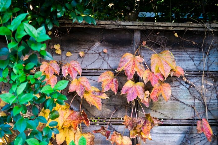 枝や茎が曲線になる植物をアクセントとして用いると、よりナチュラルな趣の庭に変身します。動きのあるツル性植物は壁やトレリスなどに這わせるとよいでしょう。