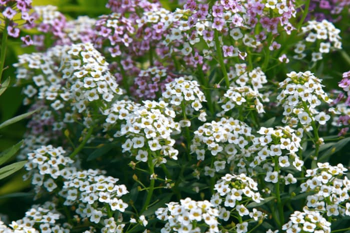 香りが良い小花を密集させ、丸みのある花房をつくるスイートアリッサム。品種によって一年草や多年草があり、ほとんどの品種が秋~翌年の初夏まで開花します。