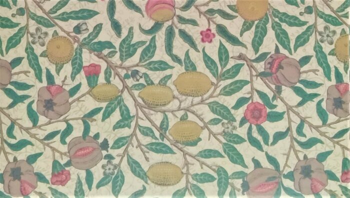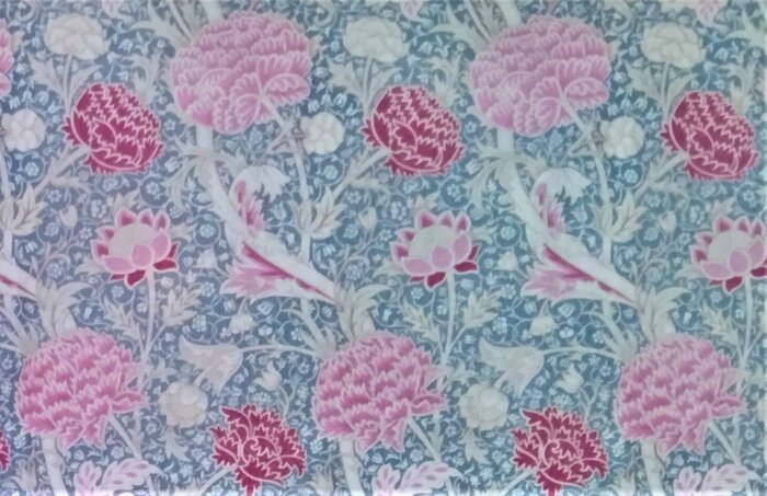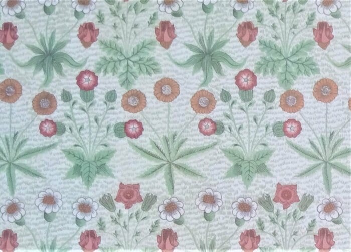 モリスの初期のデザインとして著名なデイジーです。芝生に咲き乱れるデイジー(雛菊)や草花が美しいです。使うと、空間が華やかになりそうです。