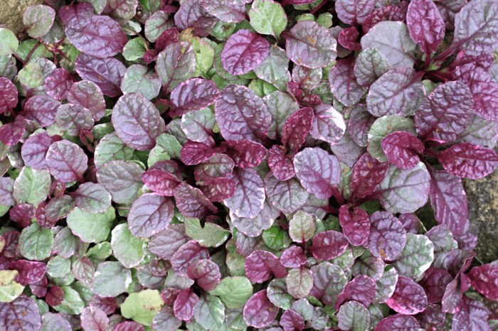 大人っぽい庭を演出するなら、シックな葉色の植物を低めに植えておくとオシャレです。特に銅葉のヒューケラやアジュガは育てやすいので初心者にもオススメです。