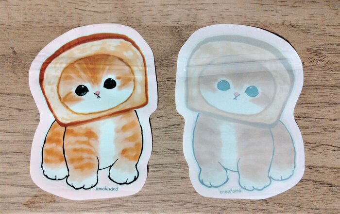 デザインは2種類ありますが、どちらも猫が被り物をしたり、ビンに入ったりと、変わった行動を取っています。