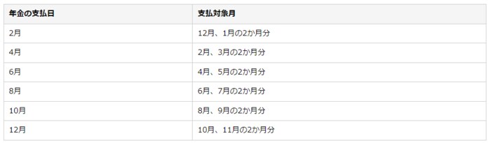 それぞれの支払月には、その前月までの2か月分の年金が支払われます。