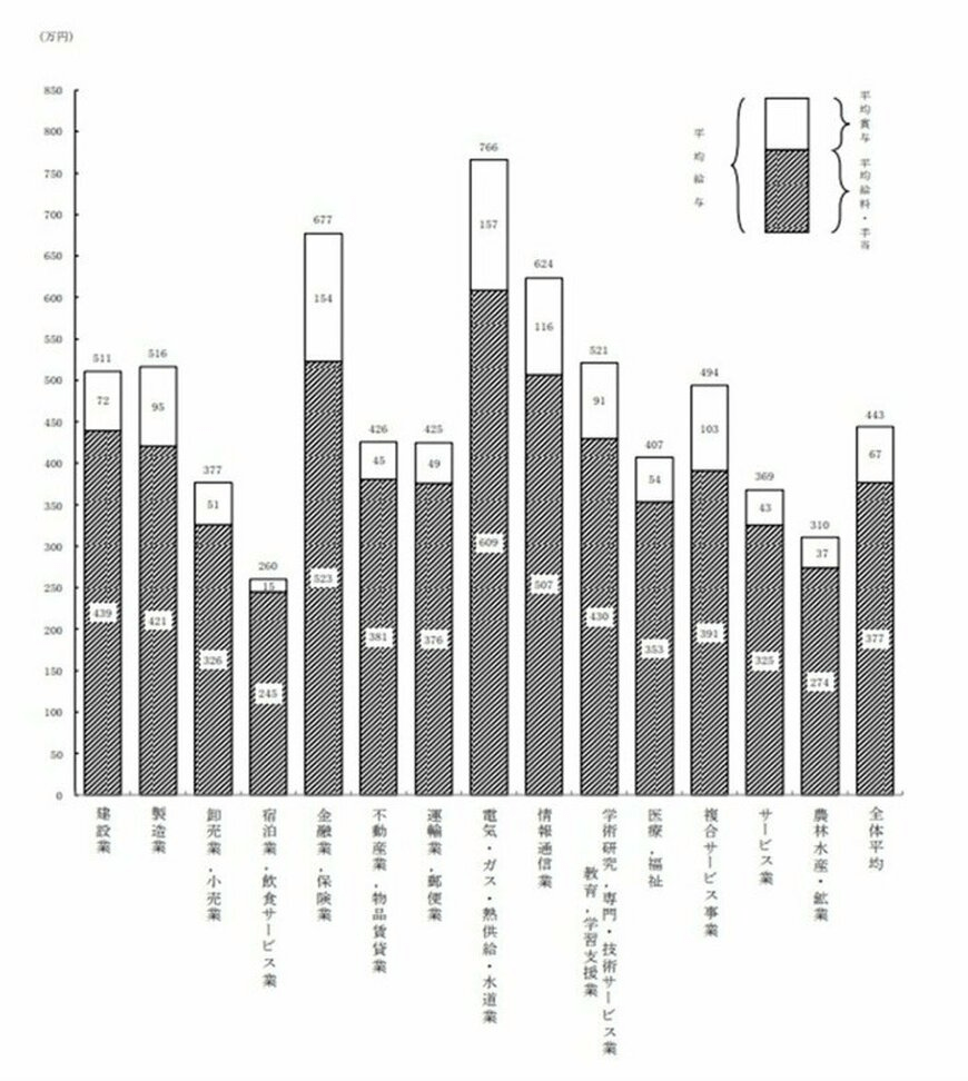 国税庁の「令和3年分民間給与実態統計調査」によると、日本の平均年収は443万円です。そこで、平均年収が500万円以上の業界を紹介します。