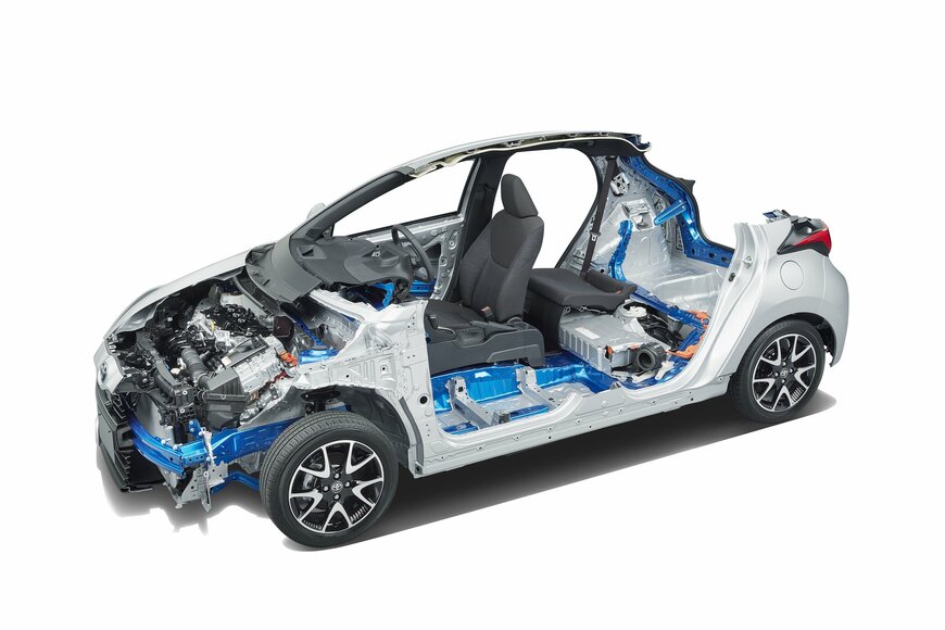 ヤリスは、TNGAプラットフォーム(GA-B)を採用しているのに対し、GRヤリスはTNGAの思想に基づくスポーツ4WDプラットフォームを採用しています。(上の写真はヤリスのプラットフォームです)