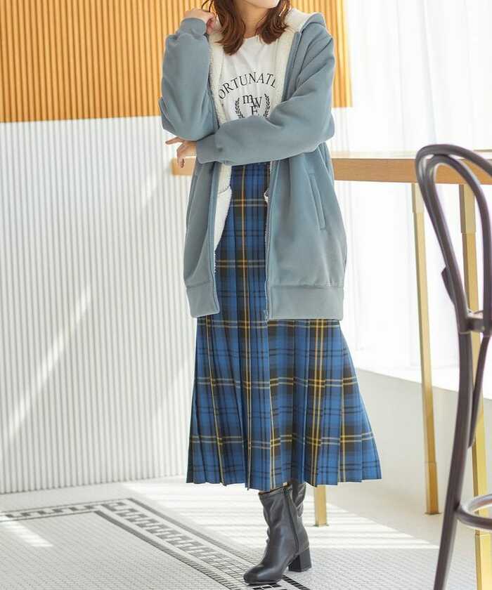 こちらがハニーズの「裏ボアロングパーカー」です。写真のように、ヒップが隠れるデザインです。気になる部分をすっぽりと隠してくれるので着痩せ効果も期待できます。