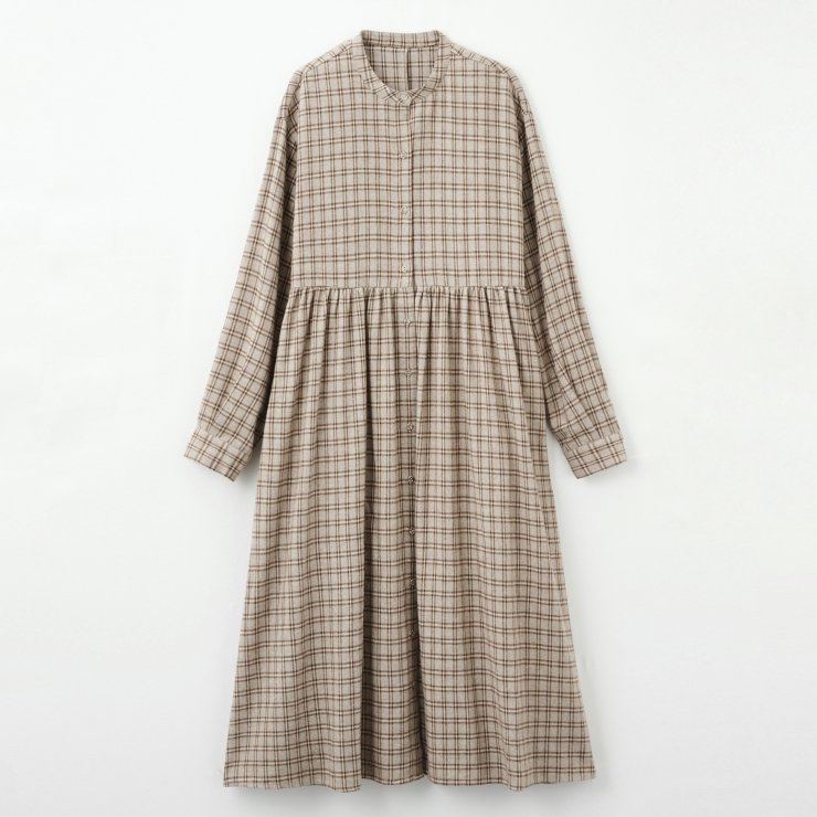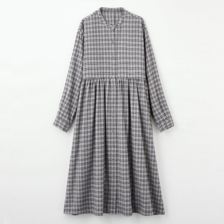 ウエストのギャザー切替がポイントになったワンピースです。前を開けて羽織としても活用できるのも嬉しいポイントです。