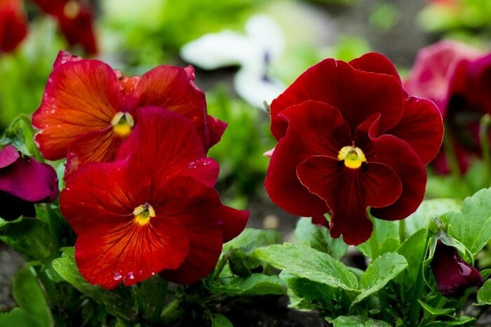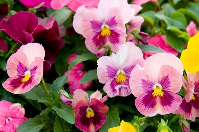 パンジー・ビオラは、いずれもスミレ科の植物。一般的に小輪がビオラ、大輪がパンジーと呼ばれていますが、品種改良が進み、ますます区別がつきにくくなっているのが現状です。