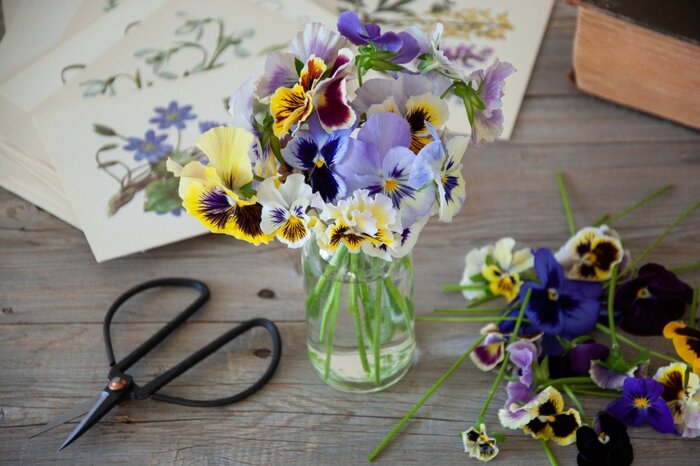 個性的でオシャレなパンジー・ビオラはとても魅力的な植物。茎が長い品種は切り花としても楽しむのもオススメです。できるだけ長くキレイに育てて、冬の庭を楽しみましょう。