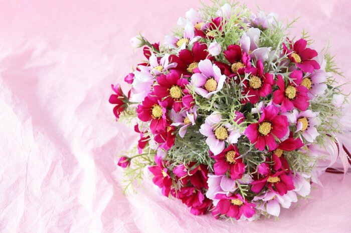 意外に思われるかもしれませんが、秋の代表花・コスモスもブーケに人気が高い花。