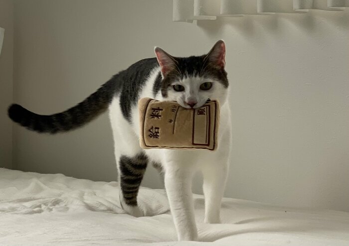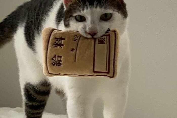 Twitterで話題の「給料袋をくわえる猫ちゃん」