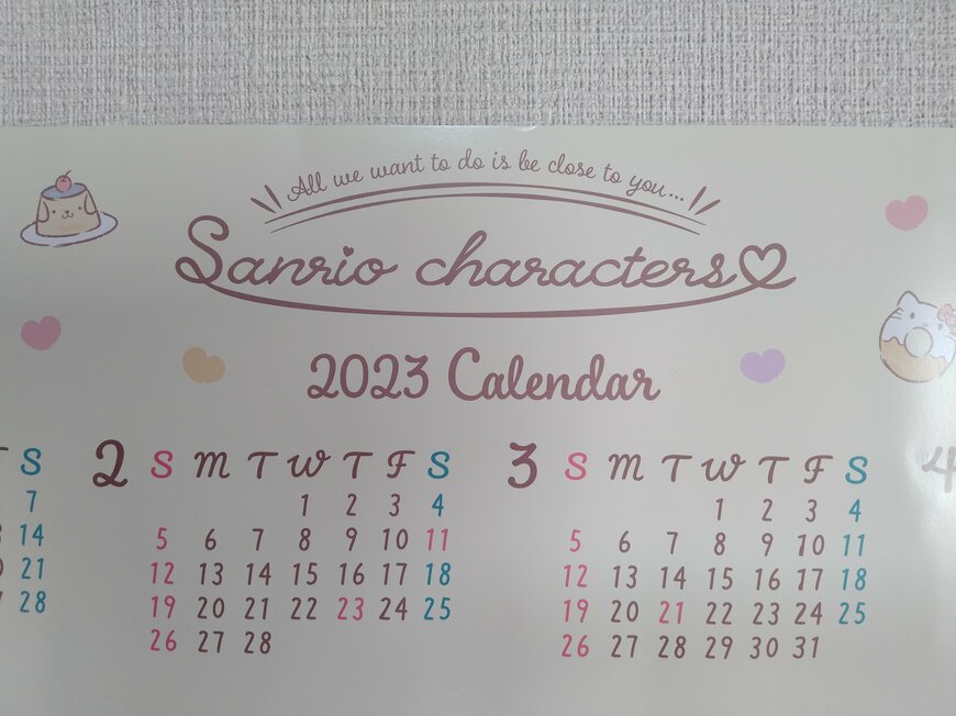 カレンダー上部中央の「Sanrio characters 2023 Calendar」というロゴもおしゃれです。全体的に見ごたえたっぷりのポスターカレンダーです。