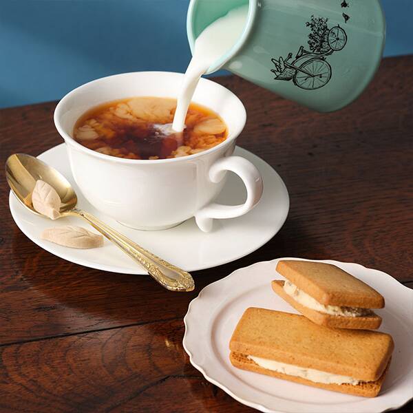 甘くフルーティーなりんごと、ほっくり香ばしいマロン風味のクリームサンドビスケットです。