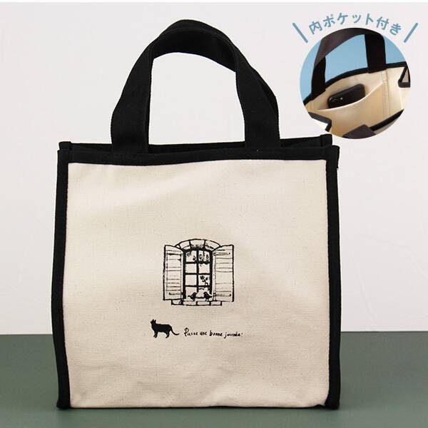 材質・素材 綿(本体、ハンドル)、ポリエステル綿混(周囲パイピング)、内ポケット付
