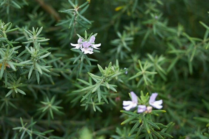 花や葉がローズマリーに似ていることから、オーストラリアン・ローズマリーとも呼ばれています。シルバー系の枝葉が細かく密集しており、花が無い時期でも見た目がオシャレなのが魅力。