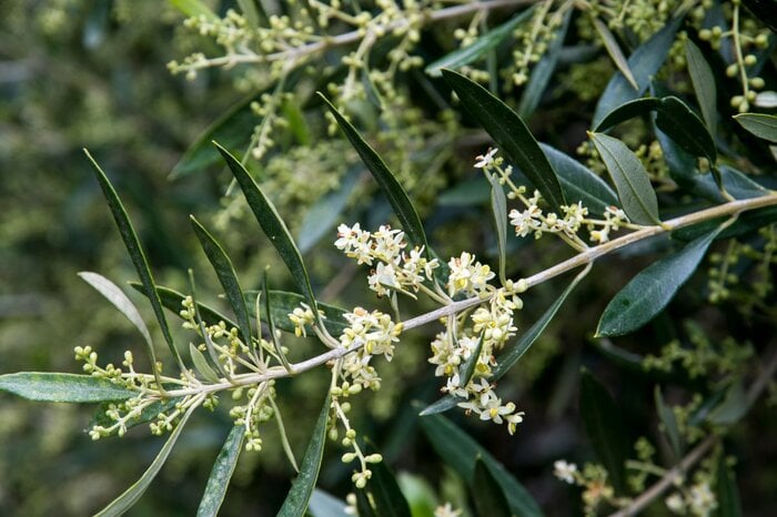 シンプル&モダンなシンボルツリーを植えたい人にオススメなのは、常緑中低木樹のオリーブ。細長い楕円形の葉は優しげな印象があり、春から初夏にかけて咲くクリーム色の小花も主張し過ぎない可愛さがあります。