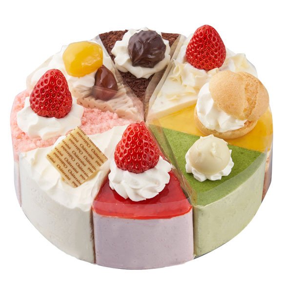 大人数でのお祝いや、いろいろな味を一度に楽しみたいという人にぴったりなのが、こちらのアソートデコレーションケーキ。