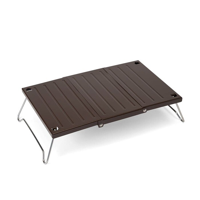 ちょっとした飲み物や食べ物を置くのに便利な、アルミ製のローテーブルです。重量約390gとかなりのコンパクト軽量ながら、耐荷重は約10㎏という優れもの。耐熱加工が施されていて耐久性もあるので、車内や室内だけでなく、キャンプや釣りなどのアウトドアシーンでも使いやすいアイテムです。専用の収納袋に三つ折りで仕舞えるので、車内に置いておくのはもちろん、バッグに入れての持ち運びもしやすいですよ。