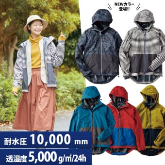 リュックの上からすっぽり羽織れるレインジャケットです。高い防水性能と耐水圧を備えており、裾のサイクルカットで背中も出にくいため、車からの乗り降りだけでなく、雨の日の自転車やバイク移動もしやすくなっています。サイズ展開やカラーバリエーションが豊富なので、親子でリンクコーデをするのにもおすすめです。