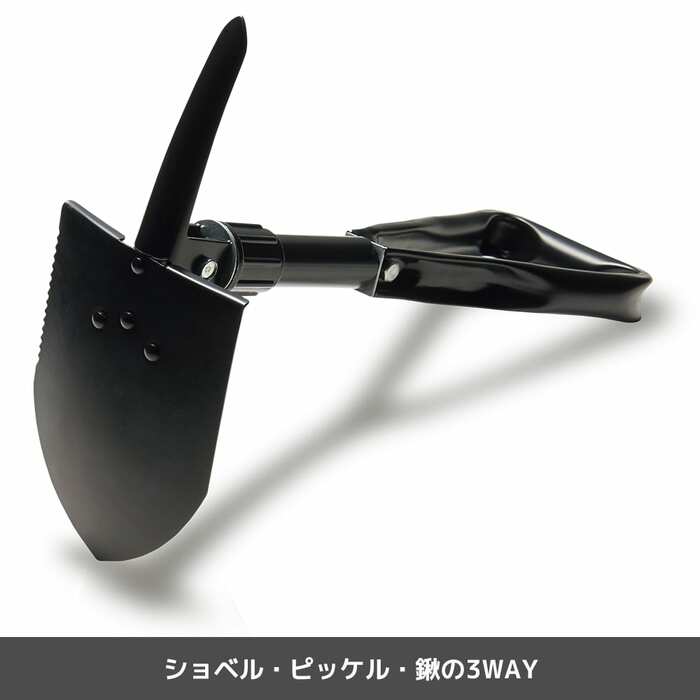 耐久性の高いスチール製のショベル。ショベル・ピッケル・クワの3通りの使い方ができる優れもので、テントまわりに溝を掘ったり、スタックした車の雪かきをしたりと、さまざまなシーンで活躍してくれます。車内やバッグの中で邪魔にならないよう、小さくたたんで収納できるのもいいですね。