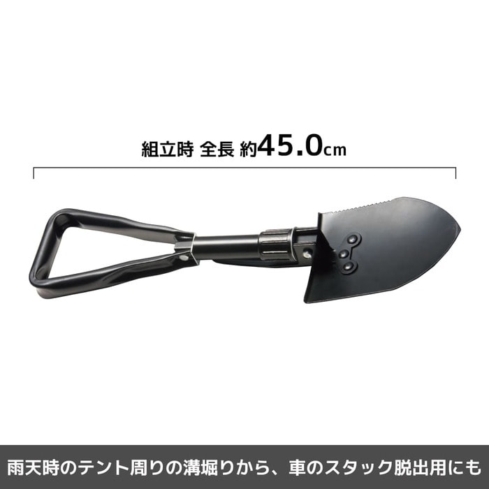 - サイズ:(全長)約45.0cm(収納時)約19.0×13.0×7.0cm(スコップ)幅12×奥行15cm