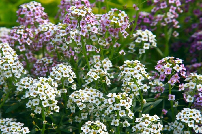スイートアリッサムは小花を株いっぱいに咲かせる多年草(多くは一年草扱い)。クリスマスローズの足元をカバーするグランドカバープランツとしてオススメです。ほふくして広がる性質があります。※参考価格:100~400円前後(3号ポット苗)