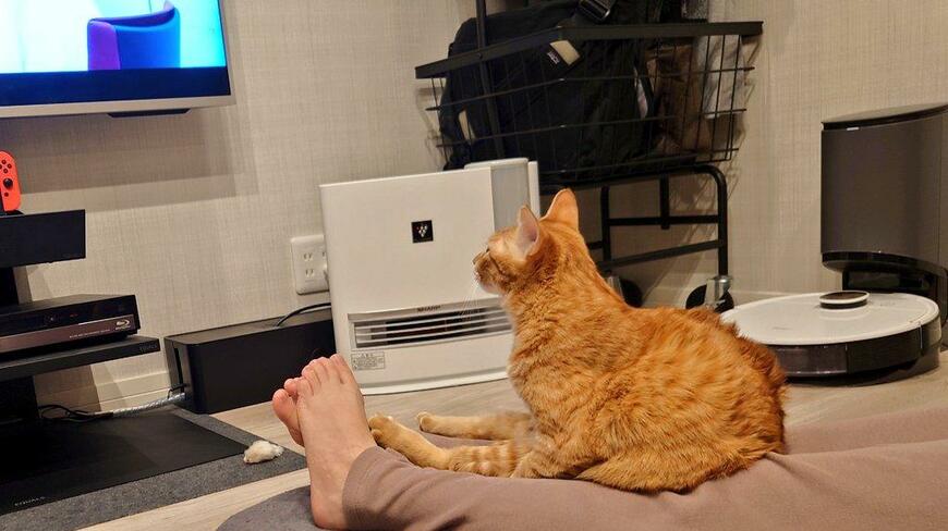 2枚目の写真を見ると、猫ちゃんはジッとテレビを見ていることがわかります。何か気になる映像が写っていたのでしょうか。