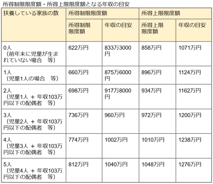 児童手当には所得制限が設けられており、所得制限を超えた場合にも特別給付として一律5000円が支給されていましたが、2022年10月支給分から特別給付を受けられる所得にも上限が設けられ、これを超える場合は支給されなくなりました。