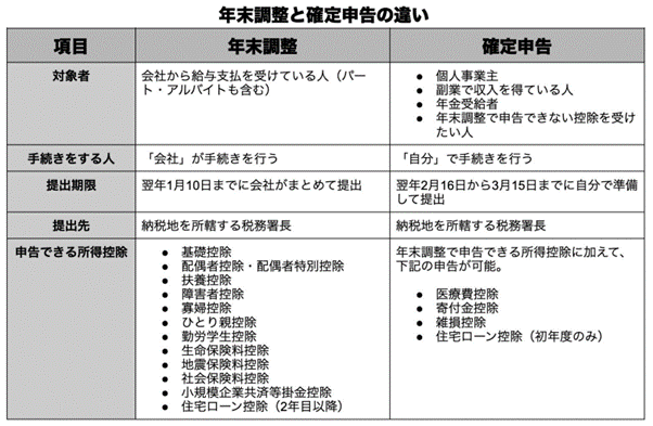 年末調整と確定申告は、どちらも本年中に稼いだ所得から「所得税を確定」させる目的で行われています。