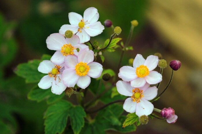 アネモネのような優しい風合いの花姿が魅力のシュウメイギク(秋明菊)。夏の終わりから晩秋にかけて咲く多年草で、コスモスと同様に秋を代表する花のひとつに数えられています。