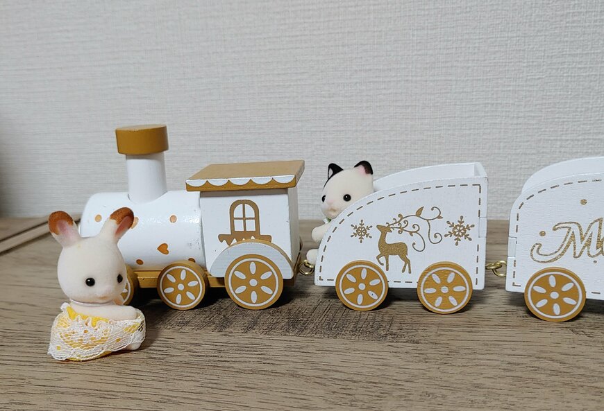 【ダイソー】クリスマスアイテムの機関車はシルバニアにシンデレラフィット! おもちゃとしても使えそう!