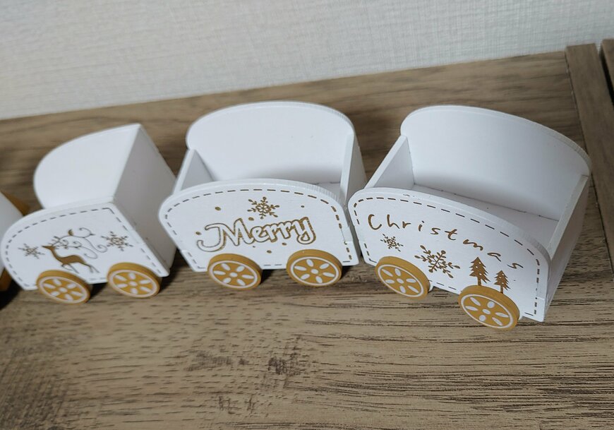 ダイソーのクリスマスの機関車は、下の写真のように荷台部分にものが入れられる仕様になっています。