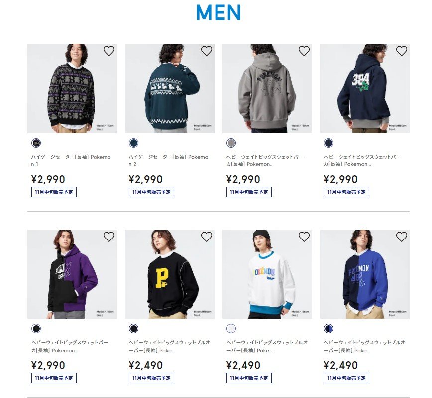 【GU】×【ポケモン】ウィンターコレクションのラインナップ