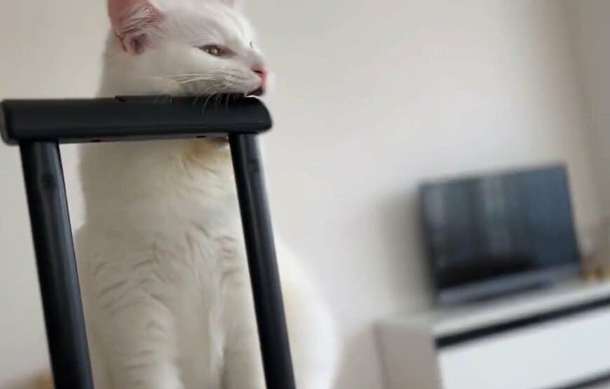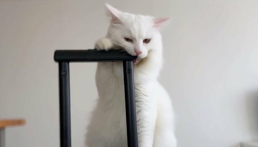 動画に写っているのは、ふわふわの毛並みをした白猫「マオ」くんです。