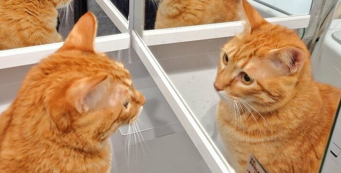 そして視界に飛び込んでくるのは、鏡に映る猫ちゃんの表情。