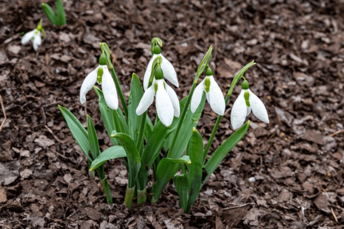 冬から春にかけて、可憐な白い花を咲かせるスノードロップ。開花期は2~3月頃で、花後は球根を掘り上げなくても翌年も花を咲かせます。