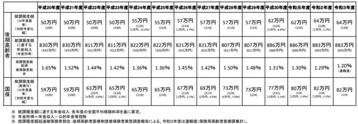また、過去10年以上の推移を追っても増加傾向が見て取れます。さらに、現役世代の自営業等が加入する国民健康保険においても、上限額の引き上げは急ピッチで行われています。