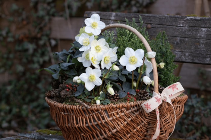 クリスマスローズは開花株、開花見込み株から育てるのが手軽でオススメ。植え付けの適期は10~3月です。軽めに根をほぐして、水はけのよい土に植え替えます。