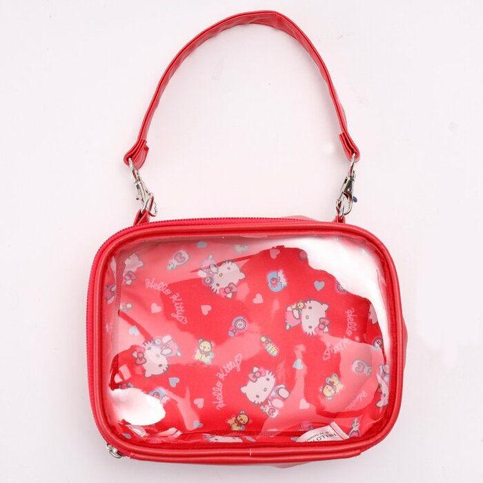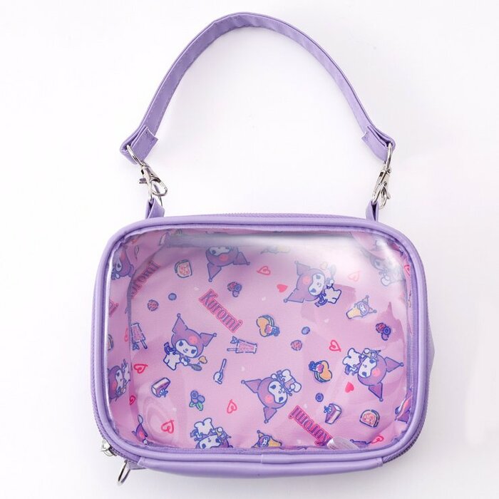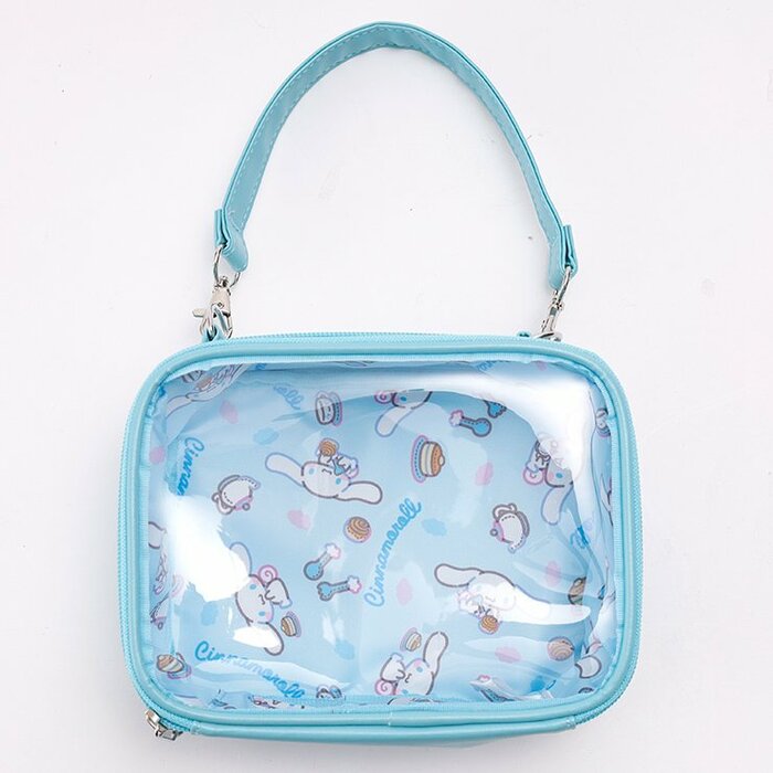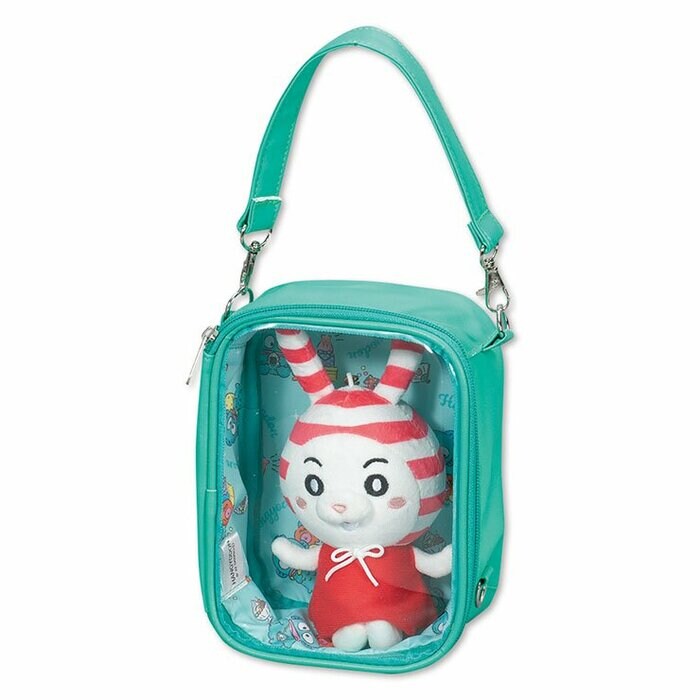 クリアなケースなので中身がよく見え、お気に入りアイテムを入れて持ち運ぶのにピッタリ。また、ストラップを調整することで縦型・横型どちらでも使えるので、いろんな形のぬいぐるみが持ち運ぶことができます。その他、見せる収納として使用してもかわいいですね。